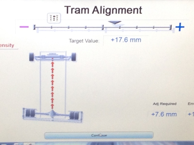 Toe and Tracking are the two most critical alignment settings for front-end tyre wear. Toe is adjustable to reduce (eliminate) shimmy (vibration) in the steering wheel. Excess or too little toe will make the front wheels fight each other, thus increasing wear. Tracking misalignment will also cause irregular tyre wear in the steer tyres. Tracking, or thrust, is gauged relative to the vehicle centreline.